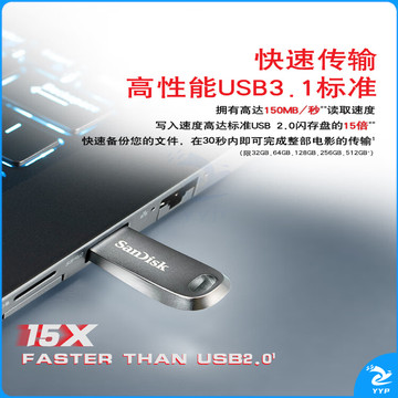 闪迪(SanDisk) 32GB USB3.1 U盘 CZ74 读速高达150MB/s 金属高速u盘 安全加密 学习办公投标大容量优盘