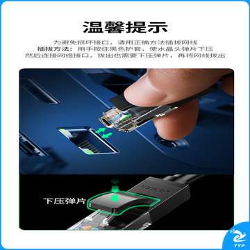 绿联(UGREEN)六类网线 千兆网络宽带线 CAT6类家用电脑监控扁平网线 8芯双绞成品跳线 1米 黑色50173