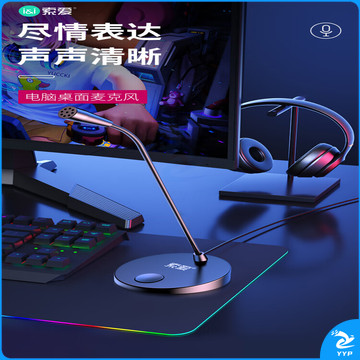 索爱(soaiy)L28电脑麦克风外置话筒有线电竞网课台式笔记本游戏语音录桌面视频会议主播直播外置声卡3.5