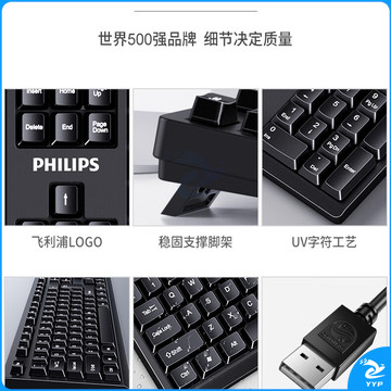 飞利浦(PHILIPS)SPK6234有线键盘 商务办公键盘 笔记本电脑台式机外接键盘 USB键盘 全尺寸 黑色