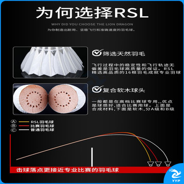 亚狮龙RSL羽毛球5号鹅毛球12只装/桶耐打稳定比赛训练羽毛球SK.NO.5