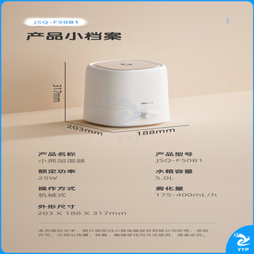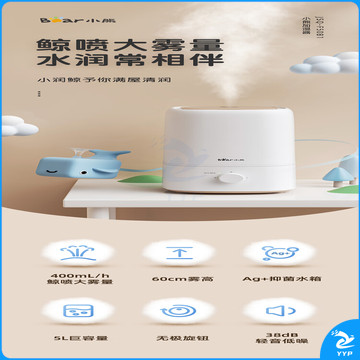 小熊(Bear)加湿器卧室轻音办公室婴儿桌面空气加湿家用大雾量净化上加水5升大容量空调伴侣 JSQ-F50B1带滤芯