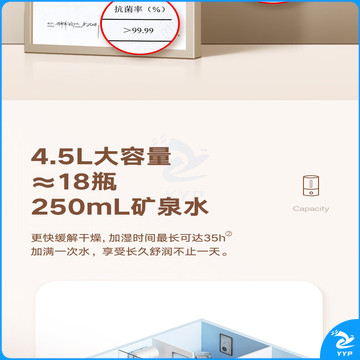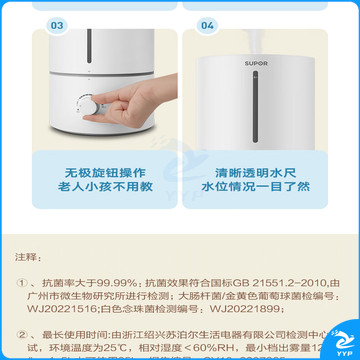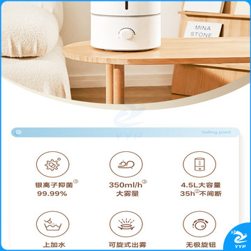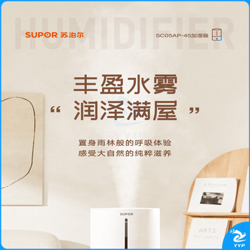 苏泊尔(SUPOR)小型加湿器4.5L卧室家用桌面大容量轻音除菌空气加湿器办公室桌面轻音上加水SC05AP-45