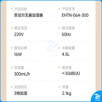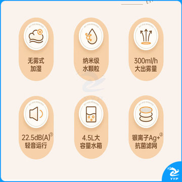 苏泊尔(SUPOR)无雾加湿器4.5L卧室家用桌面大容量婴儿孕妇轻音除菌空气加湿器空气净化空调伴侣EHTN-06A