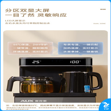 奥克斯(AUX)家用茶吧机大屏下置水桶饮水机 双温双显双出水口 立式智能遥控茶吧机制冷款YCB-0.75-58