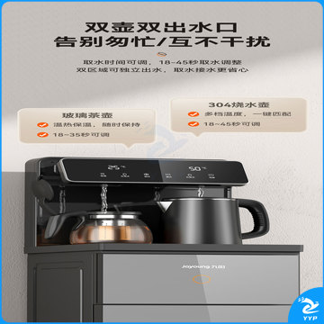 九阳(Joyoung)家用茶吧机大屏下置水桶饮水机 双温双显双出水口 立式智能茶吧机 冷热款 【月石灰】