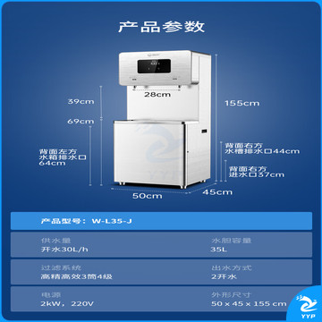 碧丽商用开水器步进式加热两开全自动不锈钢开水机大容量办公室校园过滤饮水机 W-L35-J
