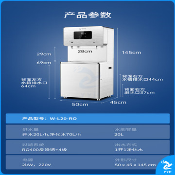 碧丽商用直饮水机RO反渗透净水器办公室校园工厂加热净水一体机冷热型立式饮水机 W-L20-RO