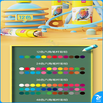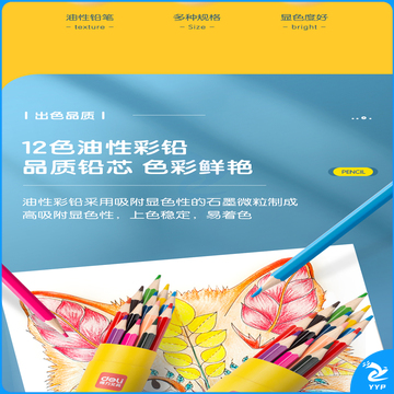 得力(deli)12色油性彩铅 原木六角杆彩色铅笔 初学者彩绘素描手绘专业学生画笔套装礼物DL-7070-12