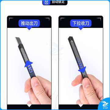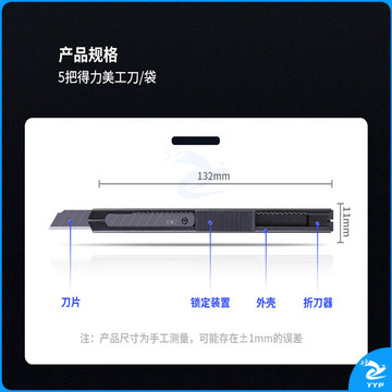 得力(deli)5把金属小号黑刃美工刀 自动锁裁纸刀小刀 办公用品 黑色TD290