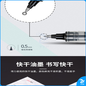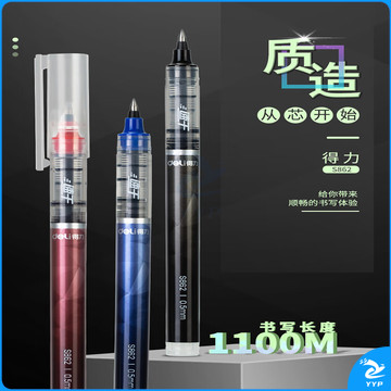 得力(deli)直液笔签字笔 0.5mm子弹头办公学生中性笔 水笔走珠笔会议笔 黑色12支/盒S862