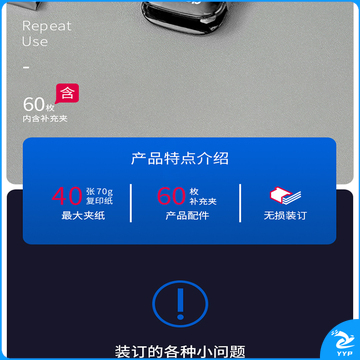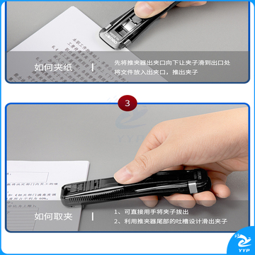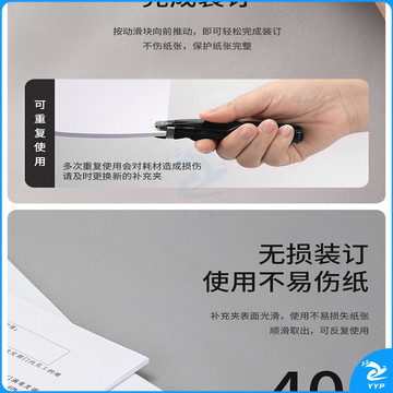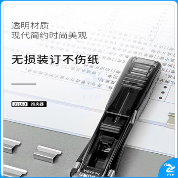 得力(deli)办公装订推夹器套装(推夹器 60枚补充夹子) 可夹纸张数40张 新型票夹文件夹子 透明黑33183