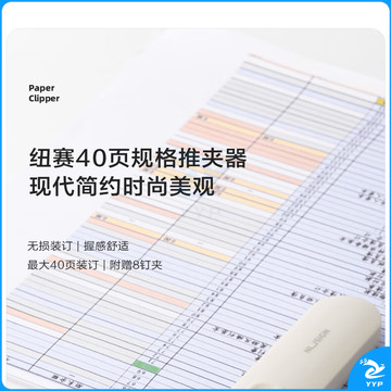 得力(deli)纽赛推夹器可夹40页纸 1个推夹器+8个补充夹 白色NS085-C