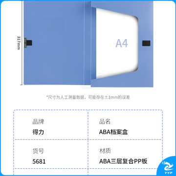 得力(deli)1只25mmA4塑料档案盒 加厚资料盒财务凭证文件盒 考试收纳 5681