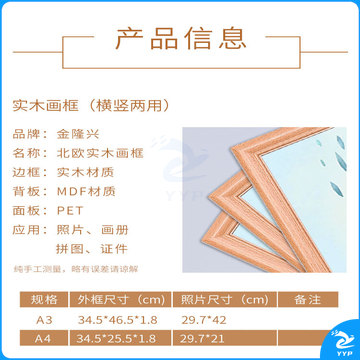 金隆兴实木相框挂墙摆台 结婚相框照片墙装饰画框装裱 营业执照正本框a3