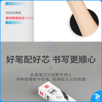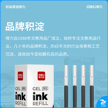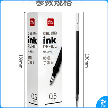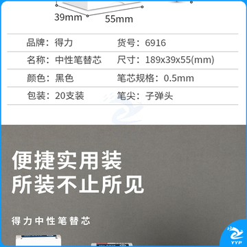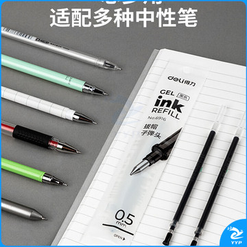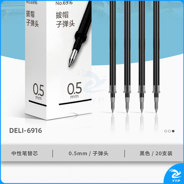 得力(deli)0.5mm黑色中性笔笔芯 子弹头水笔签字笔替芯 6600/34567/Q7适用 20支/盒6916