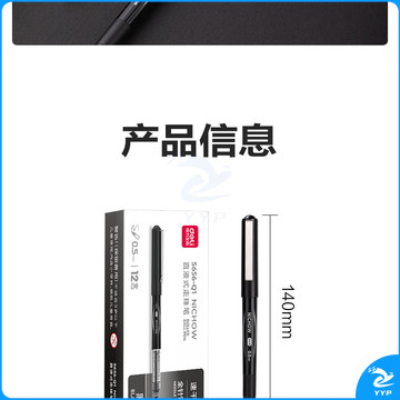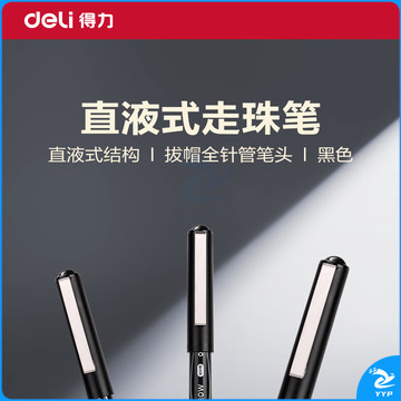 得力(deli)直液式走珠笔中性笔0.5mm全针管12支/盒黑色 S656-Q1