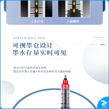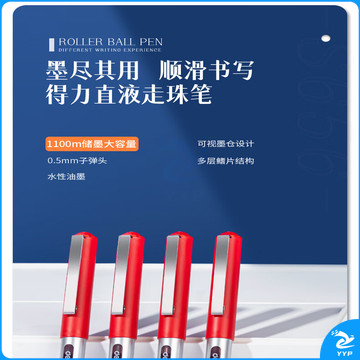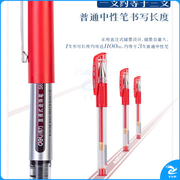 得力(deli)直液笔中性笔 0.5mm子弹头签字笔学生考试笔走珠笔水笔 红色 办公用品12支/盒S656
