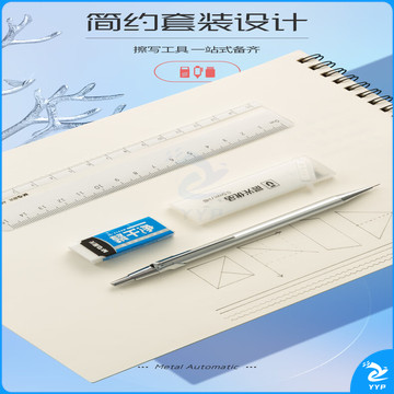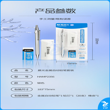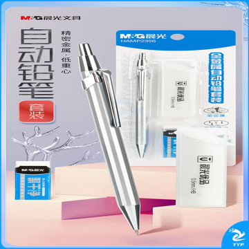 晨光(M&G)文具0.5mm/HB全金属自动铅笔套装(自动铅笔+聚干净橡皮+20支铅芯)学生考试办公书写可用HAMP2356