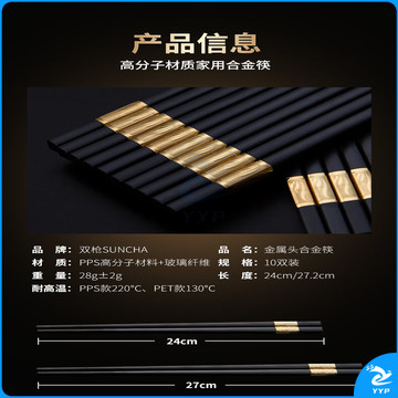 双枪 吉祥如意合金筷子 家用酒店用 家用合金筷子餐具套装 10双装
