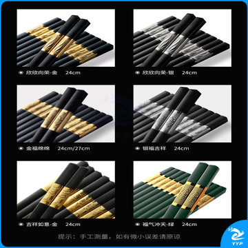 双枪合金筷子 酒店家用创意筷子套装 10双装 欣欣向荣 银色 24CM