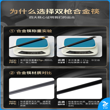 双枪抗菌金福合金筷子家用 无漆无蜡 高档酒店餐具套装 10双