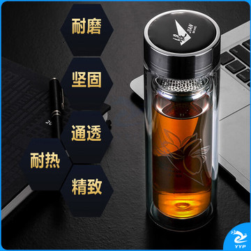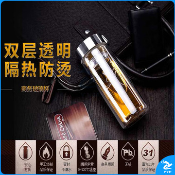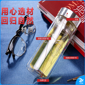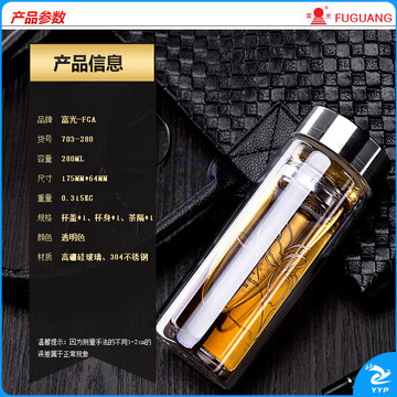 富光双层玻璃杯 高硼硅玻璃泡茶杯子 茶水分离杯 带茶隔商务水杯男士