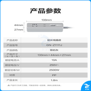 公牛(BULL)新国标插座/插线板/插排/排插/接线板/拖线板 Z世代 2位总控全长1.8米 GN-Z1111J