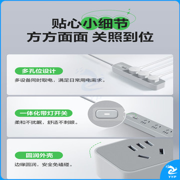 公牛(BULL)新国标插座/插线板/插排/排插/接线板/拖线板 Z世代 3位总控全长1.8米 GN-Z1031J