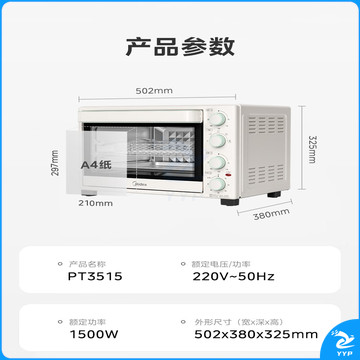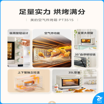 美的(Midea)35L家用多功能空气炸锅电烤箱一体机 热风空气炸/独立控温/均匀烘烤PT3515