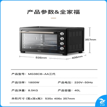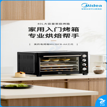 美的(Midea)40L家用大容量多功能电烤箱 独立控温/机械操控/四层烤位/多功能烘焙MG38CB-AA