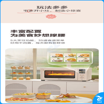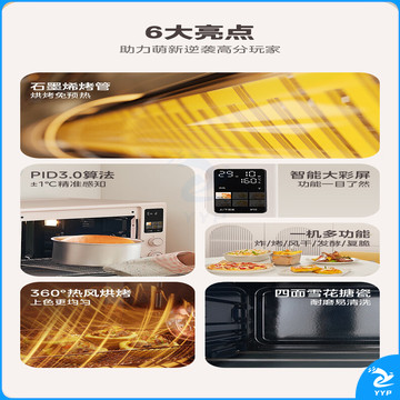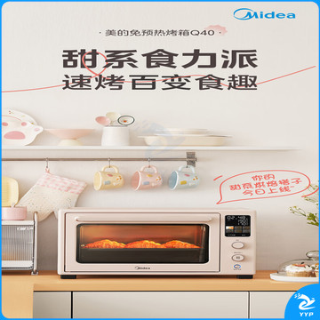 美的(Midea)Q40风炉家用多功能烤箱 石墨烯免预热/热风空气炸/四面搪瓷/彩屏屏显/复脆/发酵 奶油桃色
