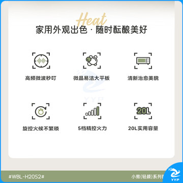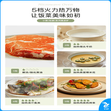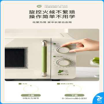 小熊(Bear)轻颜微波炉烤箱一体机 小型家用复古旋钮智能平板加热多功能高频五档火力调控WBL-H20S2