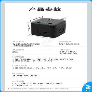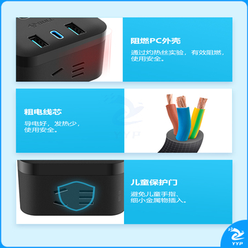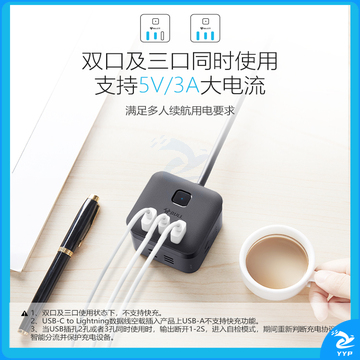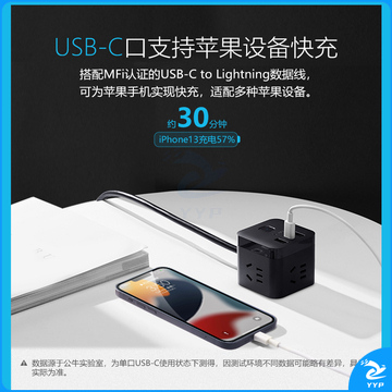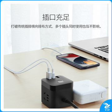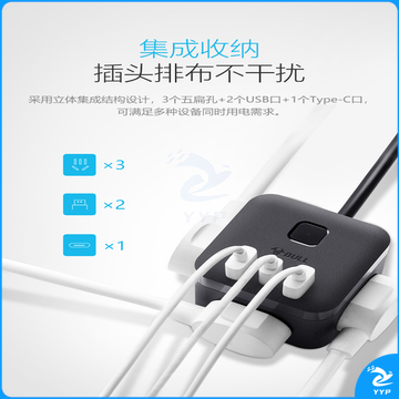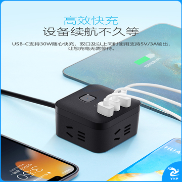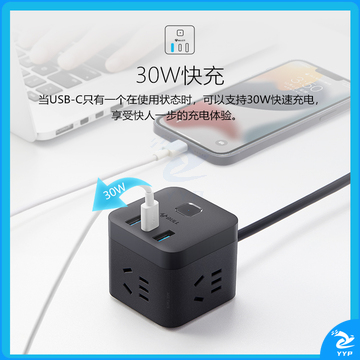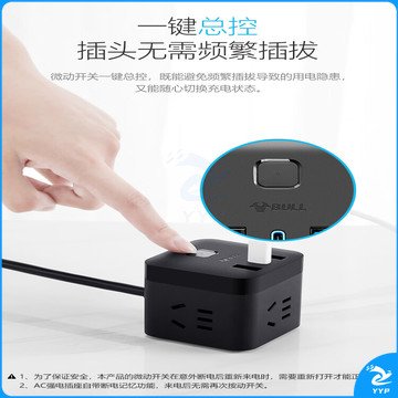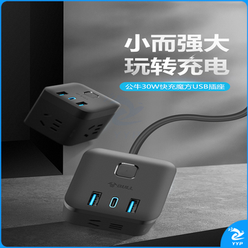 公牛(BULL)30WPD苹果快充魔方插座/插线板/插排/接线板 Type-c口+USB口+3插孔 全长1.5米黑色 GNV-UU2303H