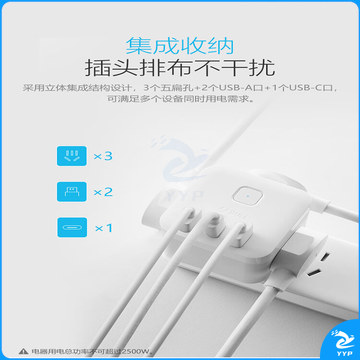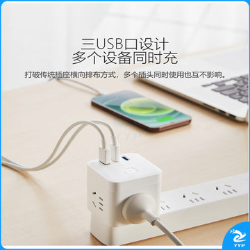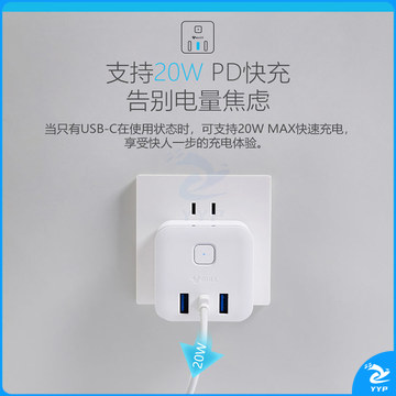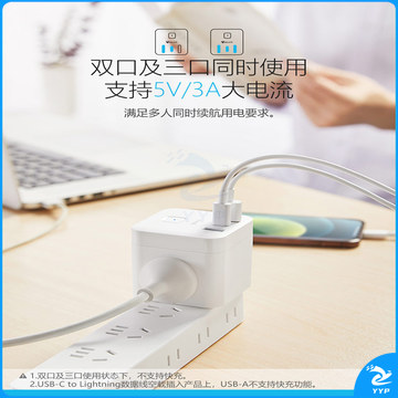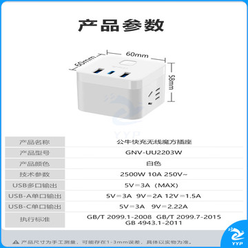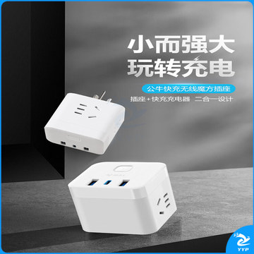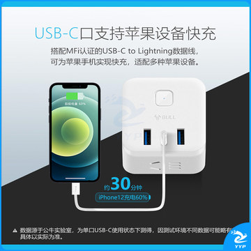 公牛(BULL)20W PD苹果快充魔方插座/插线板/插排/接线板 Type-c口+USB口+3插孔 无线 白色 GNV-UU2203W