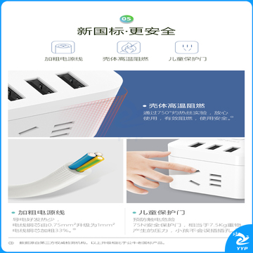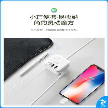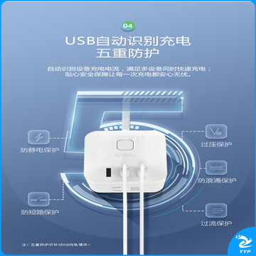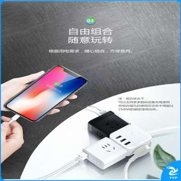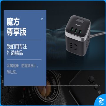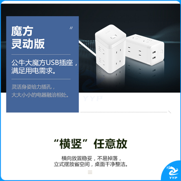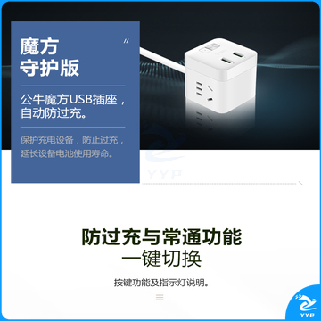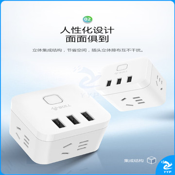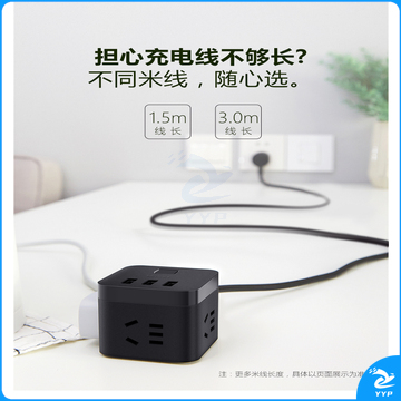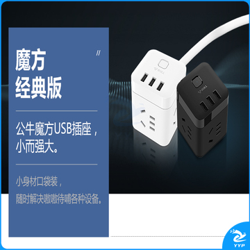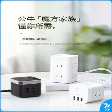 公牛(BULL) 魔方智能USB插座 插线板/插排/排插/接线板/拖线板 GN-U303H 黑色魔方USB插座全长1.5米