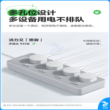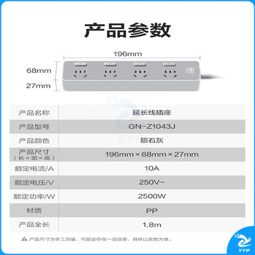 公牛(BULL)新国标插座/插线板/插排/排插/接线板/拖线板 Z世代 4位分控全长1.8米 GN-Z1043J