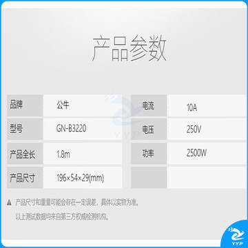 公牛(BULL)插座/插线板/插排/排插/接线板/拖线板 4位总控开关全长1.8米 GN-B3220
