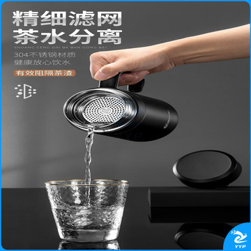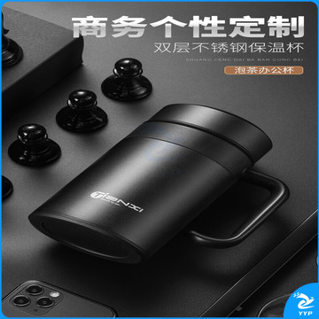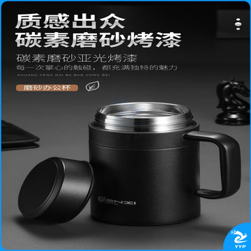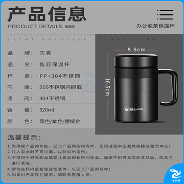 天喜保温杯 316不锈钢男士茶杯商务送礼 绅士黑520ML加厚款