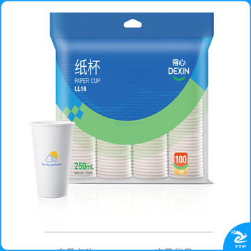 得力(deli)100只250ml一次性纸杯 商务办公家用防烫加厚水杯 白色LL18