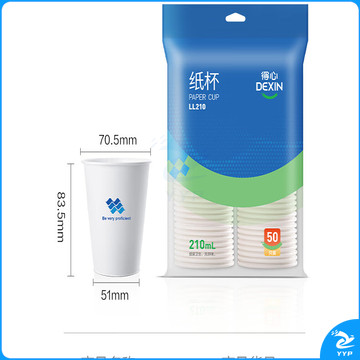 得力(deli)50只210ml一次性纸杯 商务办公家用防烫加厚水杯 白色LL210