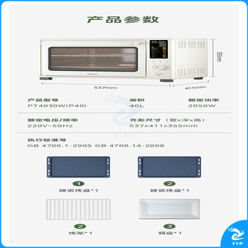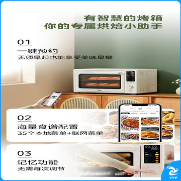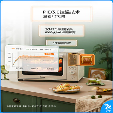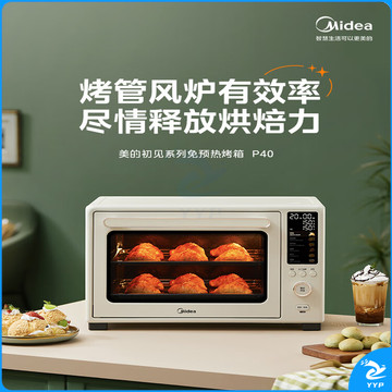 美的(Midea)初见P40风炉家用多功能烤箱 40L容量/ 石墨烯免预热/双层同烤/彩屏屏显/PID3.0精准控温 PT4030W