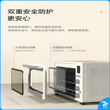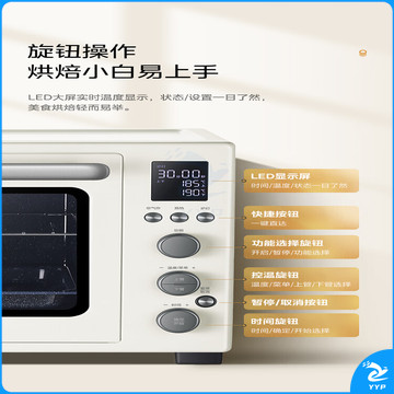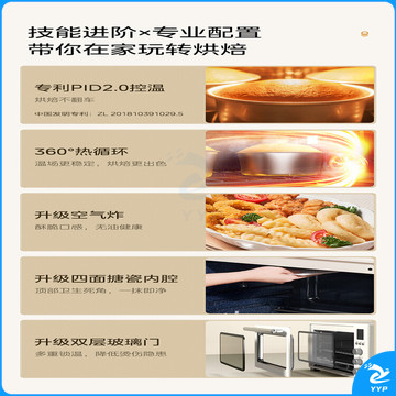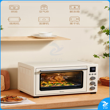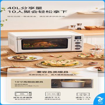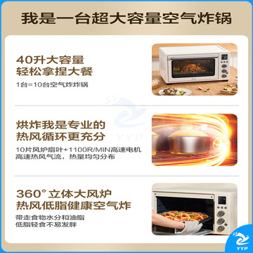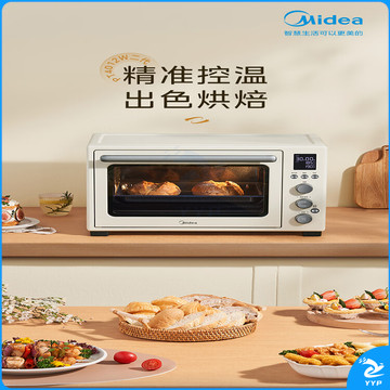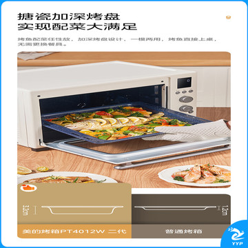 美的(Midea)家用多功能风炉电烤箱 40L大容量/四面搪瓷/热风循环/空气炸锅烤箱一体机 PT4012W二代