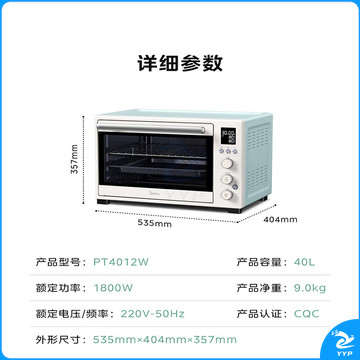美的(Midea)家用多功能热风电烤箱遇见系列PT4012W 40L大容量/精准控温/搪瓷内胆/热风循环