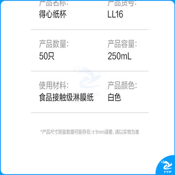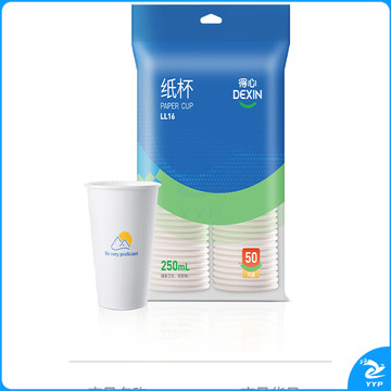 得力(deli)50只250ml一次性纸杯 商务办公家用防烫加厚水杯 白色LL16