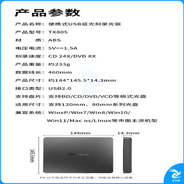 ThinkPad联想外置光驱 蓝光BD光驱刻录机 DVD刻录机移动光驱 外接光驱蓝光双接口 黑色 TX805