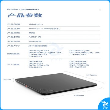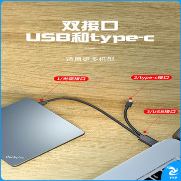 ThinkPad联想8倍速 外置光驱 笔记本台式机USB/type-c双接口 外置刻录机 移动外接光驱 DVD光盘刻录机