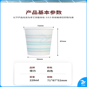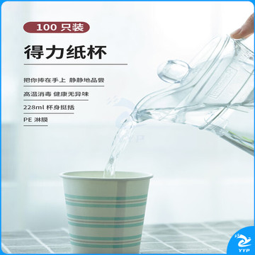 得力(deli)228ml加厚一次性杯子 纸杯/水杯 原纸消毒制作 100个装 19205