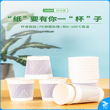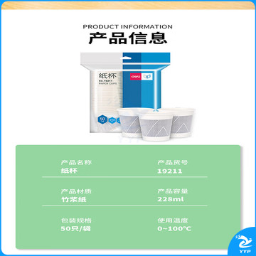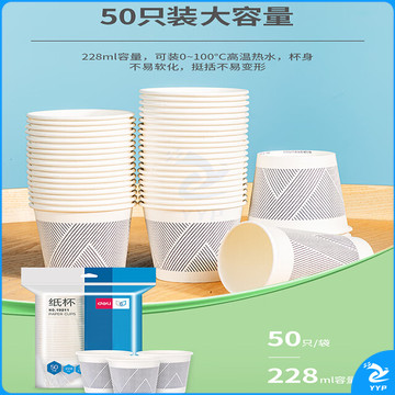 得力(deli)228ml一次性杯子 竹浆纸杯/水杯 贵宾接待 50只装 白色19211