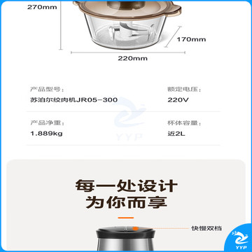 苏泊尔(SUPOR)绞肉机家用电动 不锈钢多能料理机 绞馅机碎肉搅肉机切菜辅食搅拌机JR05-300